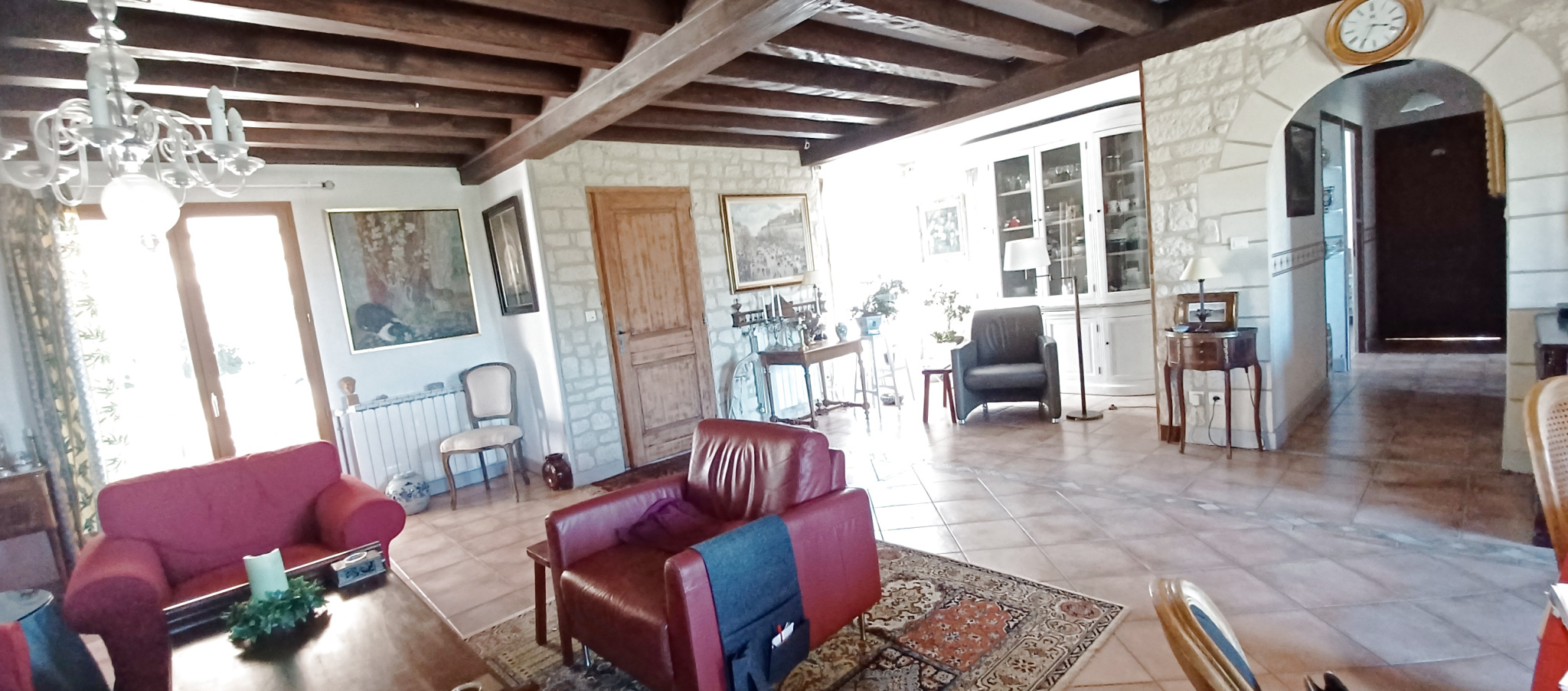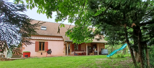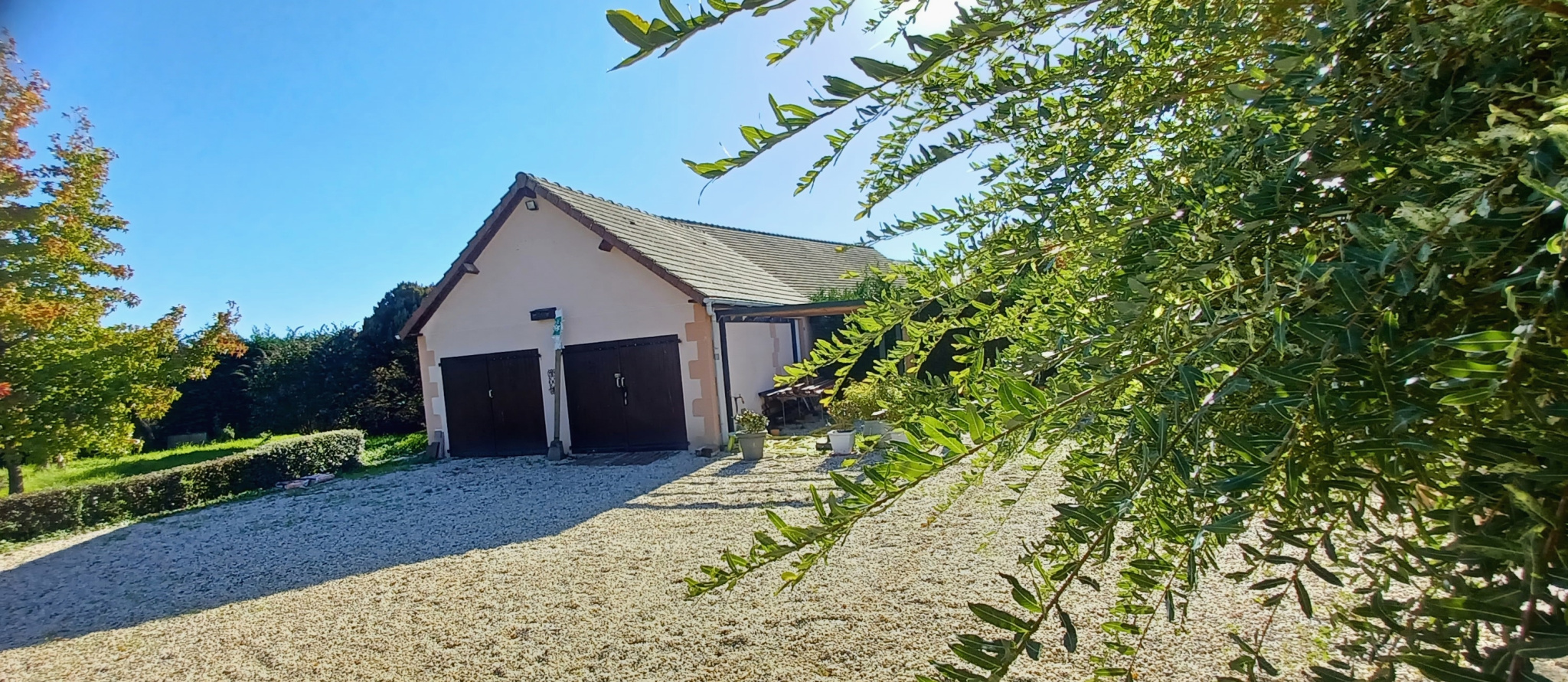 Terrasse devant et derrière la maison, barbecue. Garage double indépendant, atelier-hangar. Jardin d'agrément clos et arboré, cour d'entrée gravillonnée et une partie de pré, le tout sur 5414 m². Tous commerces, écoles, collège et thermes accessibbles à pieds.