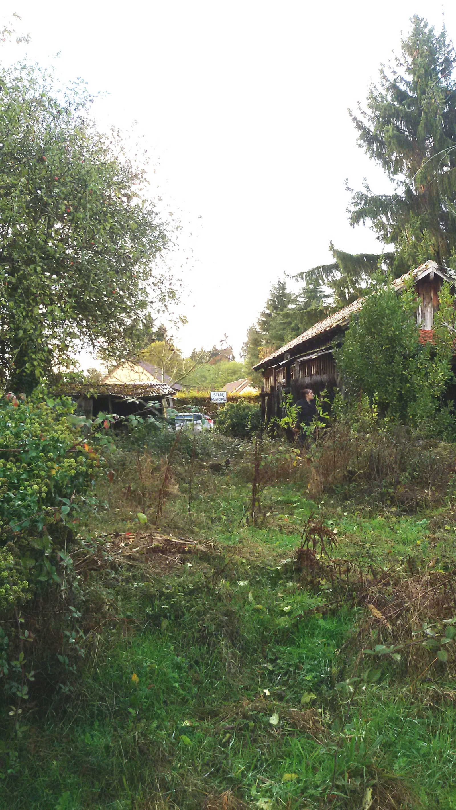 Parcelle de terrain constructible : longe de jardin exposée EST/OUEST avec petit grange en bois, entrourée de jardins